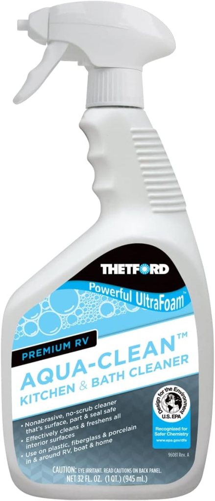 5. Multi-Surface Cleaner In a small space like an RV, a versatile cleaner is your best friend. Thetford’s Multi-Surface Cleaner is safe for countertops, appliances, and bathroom surfaces. It’s designed specifically for RV materials, so you don’t have to worry about damaging delicate finishes. This cleaner is ideal for tackling everyday messes, like spills or smudges, making it a go-to product for keeping your RV looking spotless.